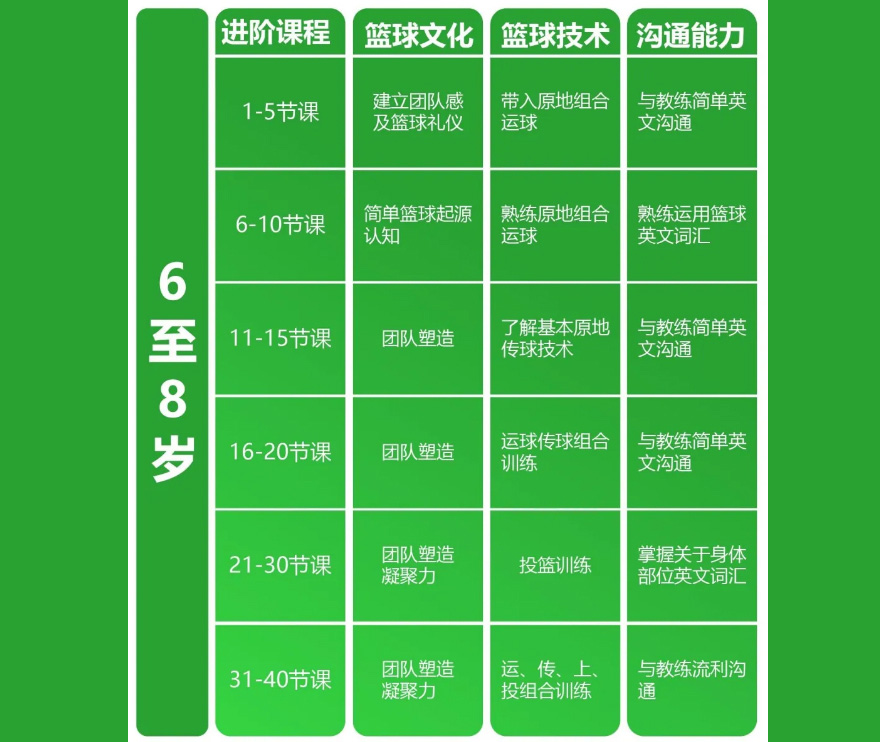| 技能突破期 | 运球变向/三步上篮/防守站位 | 18课时 |