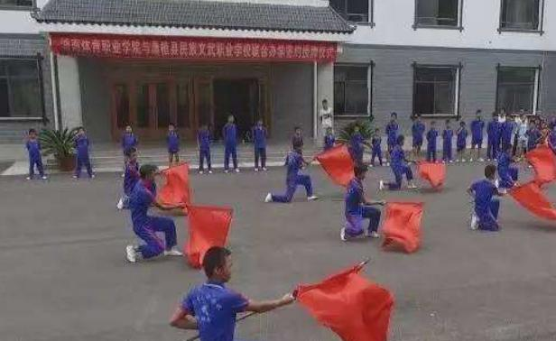 桑植县民族文武职业学校特色桑植县民族文武职业学校重点突出文化教育与体育教育相结合的特点,学校采取全封闭式管理,建立了一套科学完整的管理体制。从校长,教导主任,政工主任及各任课教师,分工负责,各尽其职。形成了良好的校风、教风和学风。文化课开设国家教育部所规定的全部课程,严格贯彻实施新课程教育理念,营造严谨、热烈的学习氛围,努力追求教学质量,全面提高学生素质。武术课开设传统武术、竞赛套路、散打、硬气功等课程,严格培养学生高尚的武术品德,使其获得扎实的武术基本功和散打实战的过硬本领。
